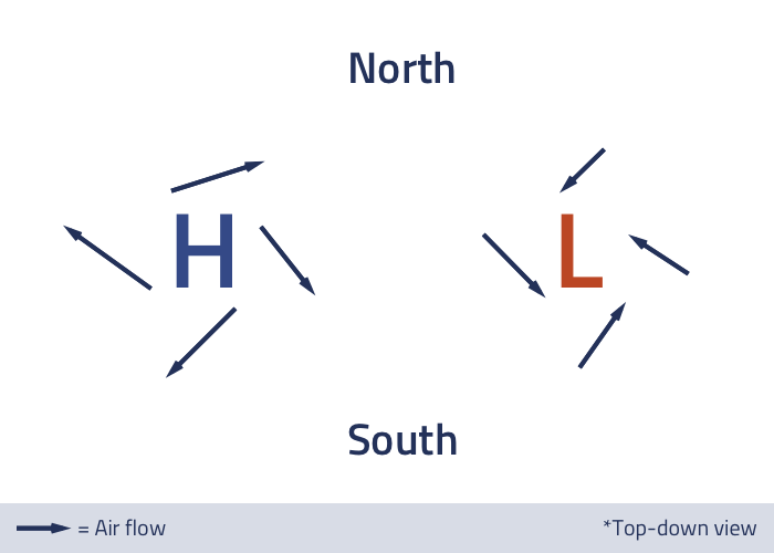 The standard sea-level pressure is 29.92 in Hg (1013 mb). Pressure conditions greater than 29.92 in Hg (1013 mb) are considered high pressure and less than 29.92 in Hg (1013 mb) are considered low pressure. In weather forecasts, high and low pressure regions are only relative terms as high pressure is generally considered a region of higher pressure than regions surrounding it and low pressure region has lower pressure than regions surrounding it.